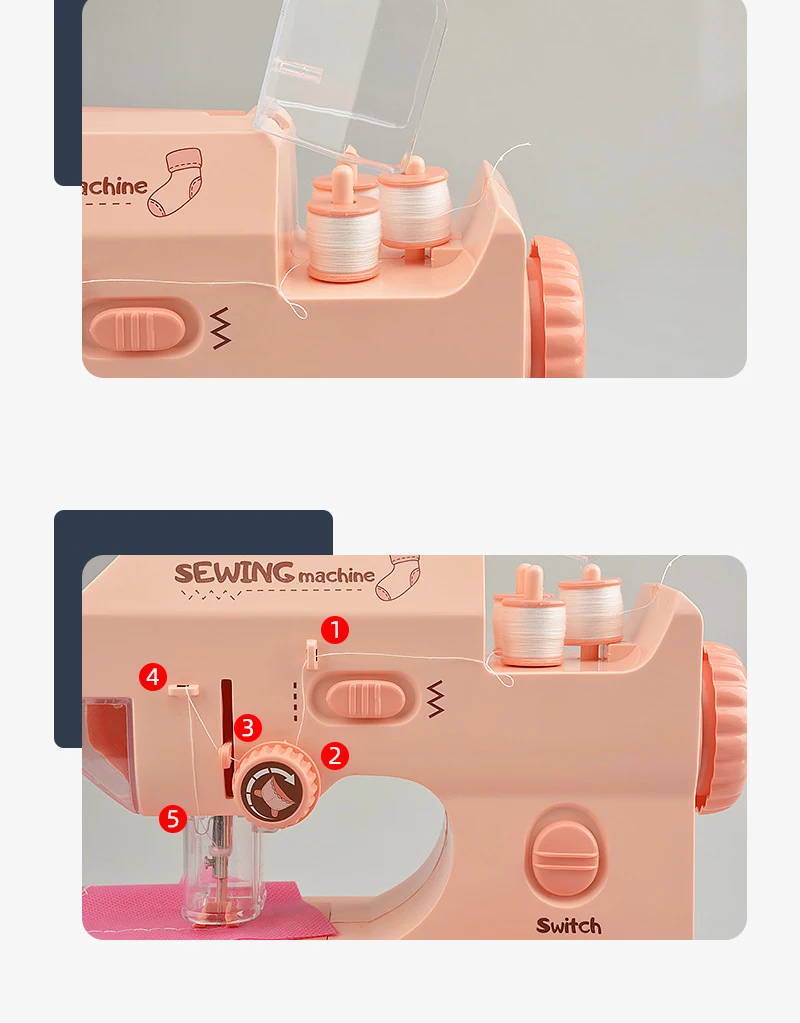 [Mini Size] This sewing machine toy is kid-sized and ready to use right out of the box, with delicate sewing machine appearance, it can attract children's eyes immediately.